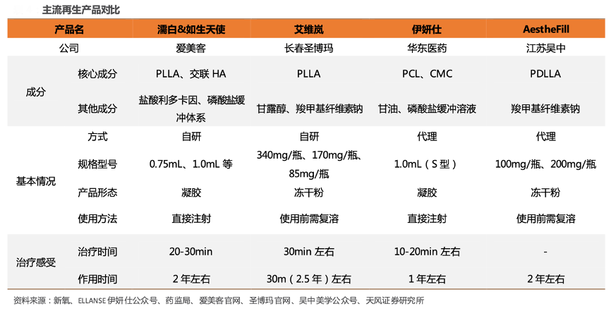 經(jīng)典案例:根據(jù)新氧、ELLANSE伊妍仕公眾號(hào)、藥監(jiān)局、愛美客官網(wǎng)、圣博瑪官網(wǎng)、吳中美學(xué)公眾號(hào)、天風(fēng)證券研究所等綜合資訊表明,與玻尿酸市場(chǎng)日益激烈的競(jìng)爭(zhēng)格局相比,國(guó) 內(nèi)再生市場(chǎng)中目前僅有 5 款產(chǎn)品獲批,分別為長(zhǎng)春圣博瑪?shù)?ldquo;艾維嵐”、華東醫(yī)藥的“伊 妍仕”、愛美客的“濡白天使”“如生天使”以及江蘇吳中的 AestheFill。