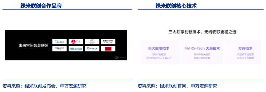 經(jīng)典案例:根據(jù)綠米聯(lián)創(chuàng)發(fā)布會(huì)、綠米聯(lián)創(chuàng)官網(wǎng)、申萬(wàn)宏源研究等綜合資訊表明,三大核心技術(shù)加持,綠米用戶體驗(yàn)穩(wěn)定為先。單火取電技術(shù)解決了傳統(tǒng)家庭單火線,智能 化改造困難的痛點(diǎn),不換燈就可實(shí)現(xiàn)智能燈控;Mars-Tech 火星技術(shù)(多負(fù)載類型強(qiáng)適應(yīng)高 可靠開關(guān)技術(shù))解決了開關(guān)關(guān)斷后智能燈離線問(wèn)題。