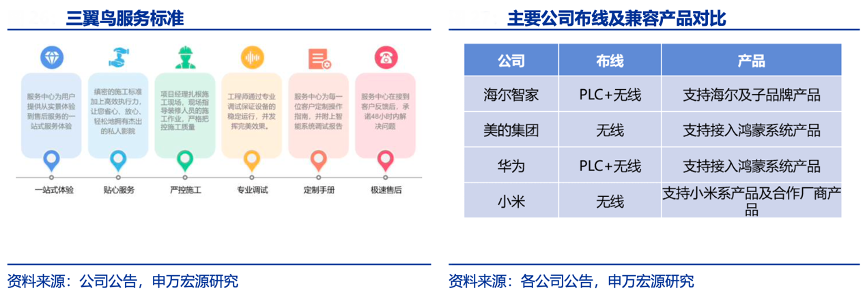 經典案例:根據(jù)公司公告、各公司公告、申萬宏源研究等綜合資訊表明,海爾智家在連接與產品端具有顯著優(yōu)勢,采用場景與功能引領的模式,對已有的高市占率大電進行智能功能升級,并發(fā)力場景連接。