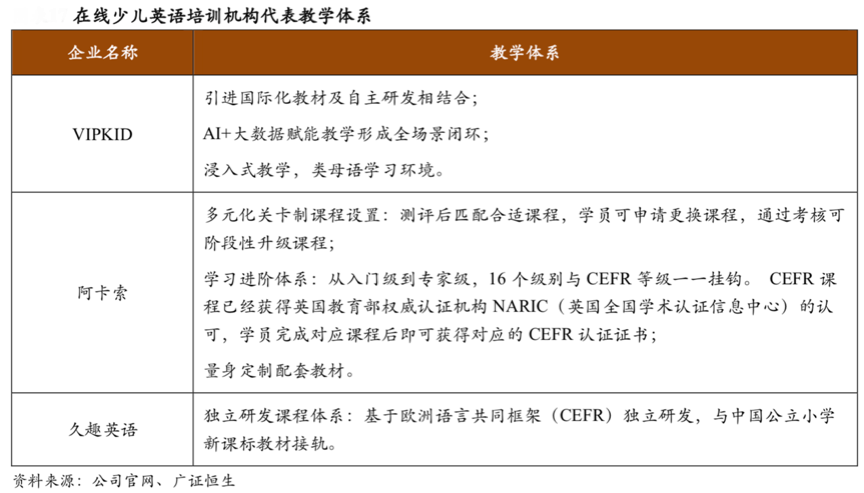 身處數(shù)字化技術(shù)驅(qū)動的時代,在線少兒英語教育企業(yè)的數(shù)字品牌策劃營銷經(jīng)營,需要強化以“學員全域教育消費體驗”為核心,強化在線小班教學、線下閱讀訓練、沙龍互動教育會等全渠道營銷策劃活動及教學服務,根據(jù)國際標準和國內(nèi)實際情況打造進階式科學課程體系和多樣性全能專題課程。根據(jù)各公司官網(wǎng)、廣證恒生等綜合資訊表明,國內(nèi)在線少兒英語培訓機構(gòu)的教學體系相對集中,各企業(yè)依靠教材體系、研發(fā)優(yōu)勢、與國外結(jié)構(gòu)合作特色等,引入大數(shù)據(jù)評定及AI資源等,全面亮化在線英語互動價值及學習進階機制,商業(yè)模式趨同,經(jīng)營手法趨同,真正的商業(yè)模式創(chuàng)新在即。