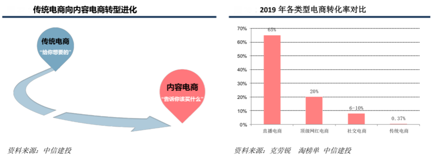 “內(nèi)容營銷策劃升級”對家電新零售電商經(jīng)營來說是一次“跨越式成長”,是一次智能品牌營銷策劃的強賦能。其旨在強化人群的精準畫像,強化基于粉絲的消費標簽、產(chǎn)品標簽及品牌標簽等,亮化家電產(chǎn)品價值、品牌特色、使用指南、美食烹飪、健康調(diào)理等多元化消費內(nèi)容輸出,提升粉絲標簽、會員人群和家電消費內(nèi)容的高度適配性,助推家電新零售電商的戰(zhàn)略性品牌營銷策劃升級。根據(jù)克勞銳、淘榜單和中信建投等綜合資訊表明,2019 年線上各平臺轉(zhuǎn)化率對比顯示,直播電商平臺轉(zhuǎn)化率高達 65%,網(wǎng)紅電商平臺轉(zhuǎn)化率達到 20%,社交電商轉(zhuǎn)化率介于 6%到 10%之間,而傳統(tǒng)電商平臺轉(zhuǎn)化率僅 0.37%,“物找人”推薦模式下,銷售轉(zhuǎn)化率得以迅速提升,是家電新零售電商經(jīng)營策劃的“一大競爭利器”。