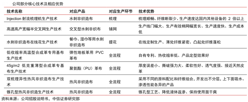 經(jīng)典案例:根據(jù)公司招股說明書、中信證券研究部等綜合資訊表明,金春股份公司建立起了一套完整的生產(chǎn)工藝及產(chǎn)品技術(shù)研發(fā)體系,截至 2020 年 8 月,公司共有31項(xiàng)技術(shù)專利。以衛(wèi)生用品市場為例,其研發(fā)的雙面異性熱風(fēng)非織造布,可將產(chǎn)品液體吸收時(shí)間縮短為 2.1 秒,擴(kuò)散長度可達(dá) 70mm,回滲量減少至 0.05g,在市場上獨(dú)樹一幟。