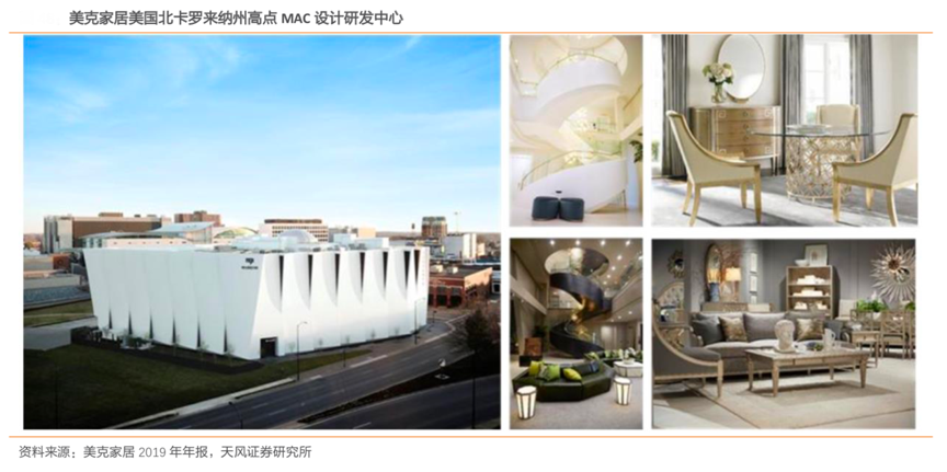 經(jīng)典案例:根據(jù)美克家居2019年年報(bào)、天風(fēng)證券研究所等綜合資訊表明,2019 年 4 月 4 日,美克家居公司 MAC 設(shè)計(jì)研發(fā)中心在美國北卡羅來納州高點(diǎn)市盛裝啟幕。該設(shè)計(jì)研發(fā)中心旨在展示其家具產(chǎn)品,同時(shí)也將作為在美國北卡羅來納州高點(diǎn)的家居藝術(shù)中心,吸引來自世界各地的優(yōu)秀設(shè)計(jì)師和藝術(shù)家進(jìn)行交流。
