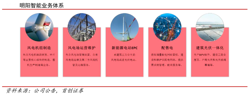 經(jīng)典案例:根據(jù)公司公告、首創(chuàng)證券等綜合資訊表明,明陽智能以實(shí)現(xiàn)能源的綠色、普惠和智慧化為使命,以打造清潔能源全生命周期價(jià)值鏈管理與系統(tǒng)解決方案的供應(yīng)商為愿景,目前已逐步發(fā)展成為國內(nèi)領(lǐng)先、全球具有重要影響力的智慧能源企業(yè)集團(tuán)。主營業(yè)務(wù)包括新能源高端裝備制造、新能源電站投資運(yùn)營及智能管理業(yè)務(wù)。