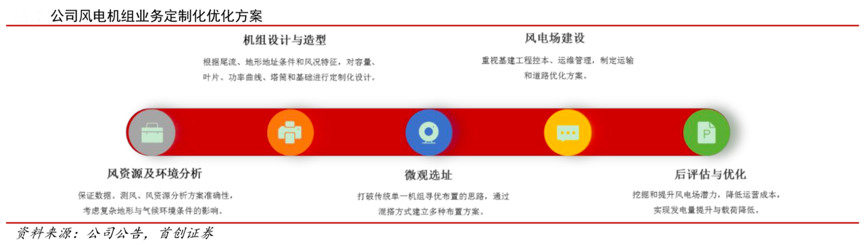 經(jīng)典案例:根據(jù)公司公告、首創(chuàng)證券等綜合資訊表明,近年來,風(fēng)電場(chǎng)客戶的招標(biāo)從過去單純的產(chǎn)品招標(biāo),轉(zhuǎn)為風(fēng)電場(chǎng)建設(shè)“整體解決方案”招標(biāo)。為了提高該類風(fēng)電場(chǎng)的經(jīng)濟(jì)效益和開發(fā)價(jià)值,明陽智能公司針對(duì)風(fēng)電場(chǎng)特有的風(fēng)況特征、地形條件進(jìn)行定制化設(shè)計(jì)、對(duì)機(jī)組固有參數(shù)的輸入、既定基礎(chǔ)的設(shè) 計(jì)模式引入差異化的設(shè)計(jì),實(shí)現(xiàn)風(fēng)電場(chǎng)整體經(jīng)濟(jì)效益的提升——在風(fēng)電場(chǎng)整體投資不增加的情況下,提升發(fā)電量,降低度電成本。