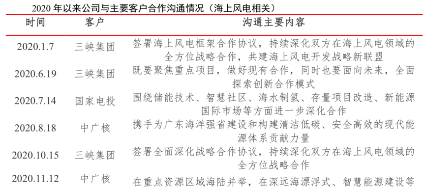 經典案例:根據(jù)公司公告、首創(chuàng)證券等綜合資訊表明,明陽智能公司已與全部主流發(fā)電集團簽署戰(zhàn)略合作協(xié)議或達成合作研究開發(fā)意向。其已與三峽集團簽署全 面深化戰(zhàn)略合作協(xié)議,雙方將攜手在東南沿海“海上三峽”開發(fā)布局、陸地大基地、科 技創(chuàng)新、聯(lián)合出海等相關領域開展更深入廣泛的合作,持續(xù)深化雙方在海上風電領域的全方位戰(zhàn)略合作。