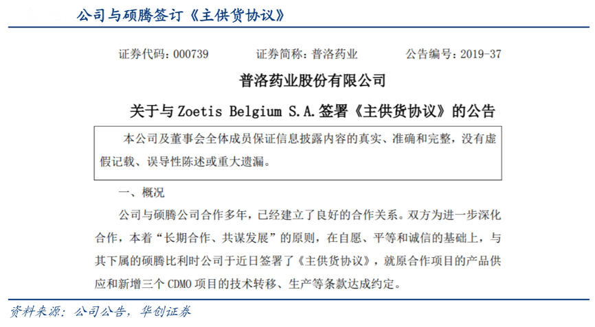 經(jīng)典案例:根據(jù)公司公告、華創(chuàng)證券等綜合資訊表明,由于產(chǎn)品生命周期長、利潤率高,全球獸藥龍頭在進行CDMO 項目轉移時也相應會更慎重、對承接方的要求很高,因此業(yè)務具有很高的進入壁壘。普洛藥業(yè)依托過硬的能力和與全球頭部獸藥企業(yè)已經(jīng)建立起了良好合作關系。