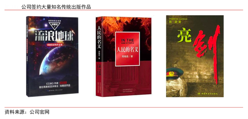 經(jīng)典案例:根據(jù)公司官網(wǎng)、中信證券研究部等綜合資訊表明,中文在線公司與 600 余家版權(quán)機(jī)構(gòu)合作,累計(jì)簽約知 名作家、暢銷書(shū)作者 2000 余位。公司簽約了大量頂級(jí)傳統(tǒng)名家,如巴金、余秋雨等,還簽約了大量?jī)?yōu)秀出版作品如《流 浪地球》、《人民的名義》、《大明王朝 1566》、《亮劍》、《推拿》、《塵埃落定》、《歷史的天 空》、《文化苦旅》等,不斷完善版權(quán)布局,打造優(yōu)質(zhì)內(nèi)容矩陣。