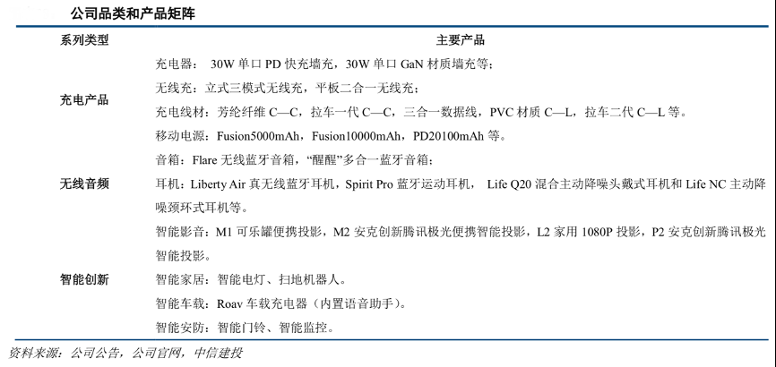 經(jīng)營(yíng)案例:根據(jù)公司公告、公司官網(wǎng)和中信建投等綜合資訊表明,安克創(chuàng)新公司產(chǎn)品包括充電產(chǎn)品、無(wú)線音頻產(chǎn)品、智能創(chuàng)新產(chǎn)品三大類(lèi)。相比其他跨境同業(yè),其品類(lèi)聚焦消費(fèi)電子,突出技術(shù)特點(diǎn),品類(lèi)間協(xié)同性強(qiáng),便于強(qiáng)化消費(fèi)者整體認(rèn)知框架。