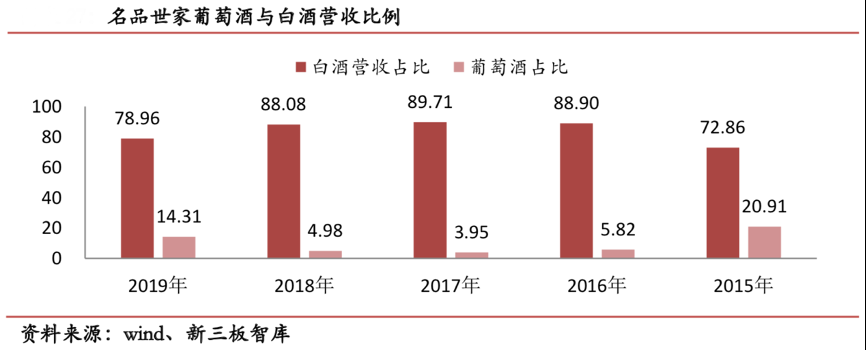 經(jīng)典案例:根據(jù)wind、新三板智庫等綜合資訊表明,名品世家2019 年,公司營收增長11.41%,營業(yè)利潤同比增長 25.35%,銷售毛利率由 8.8%上升到 9.52%。同時其葡萄酒銷售占比上升近 4 倍,白酒銷售占比下降。