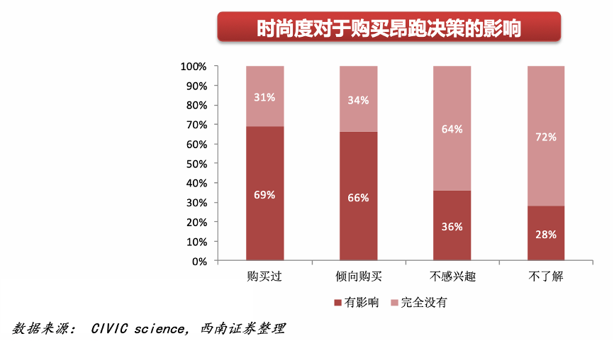 經(jīng)典案例:根據(jù)CIVIC science、西南證券等綜合資訊表明,昂跑以時(shí)尚引領(lǐng)購買潮,七成消費(fèi)者視鞋履時(shí)尚性為關(guān)鍵決策因素,據(jù)三方數(shù)據(jù)統(tǒng)計(jì),在選擇是否購買昂跑鞋時(shí),有約70%的已購買者表示昂跑的時(shí)尚度對(duì)于他們的購買決策產(chǎn)生了影響,傾向購買的潛在消費(fèi)者中也有66%的比例在購買時(shí)會(huì)考慮時(shí)尚屬性的影響。