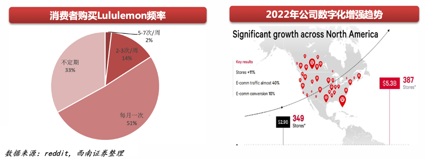 經(jīng)典案例:根據(jù)reddit、西南證券等綜合資訊表明,Lululemon通過分析這些大數(shù)據(jù),可以更快和更精準(zhǔn)的把傳播內(nèi)容點(diǎn)對點(diǎn)的鋪蓋到每個(gè)顧客,與客戶建立以情感為基礎(chǔ)的正向交流,增強(qiáng)客戶粘性,從而讓社群裂變,擴(kuò)大自己的客戶人群,提高產(chǎn)品復(fù)購率。根據(jù)Reddit網(wǎng)站統(tǒng)計(jì),51%lululemon消費(fèi)者會每個(gè)月購買一次,33%消費(fèi)者購買頻次不固定,14%消費(fèi)者每周會購買兩三次; 2%的消費(fèi)者每周會購買5-7次。