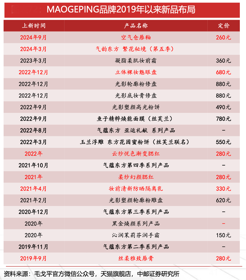 經(jīng)典案例:根據(jù)蟬媽媽數(shù)據(jù)、毛戈平天貓官方旗艦店、東方財富證券研究所等綜合資訊表明,毛戈平2024年以來累計至 11 月 11 日毛戈平品牌在抖音渠道累計 GMV 為 11.6 億元,其中光感無痕粉膏(系列產(chǎn)品,包括光感美肌/清透無痕粉膏等產(chǎn)品)實現(xiàn)GMV4.7 億元、銷售占比 40%,為 GMV 占比最高的 SKU。