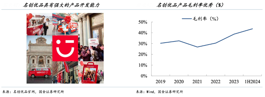 經(jīng)典案例:根據(jù)名創(chuàng)優(yōu)品官網(wǎng)、wind、國(guó)金證券研究所等綜合資訊表明,名創(chuàng)優(yōu)品作為中國(guó)知名的 IP 設(shè)計(jì)零售集團(tuán),在產(chǎn)品開發(fā)上具有豐富經(jīng)驗(yàn),在差異化爆款產(chǎn)品支持下毛利率一直處于 30-40% 的水平。