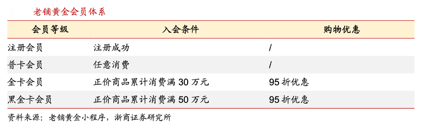 經(jīng)典案例:根據(jù)老鋪黃金小程序、浙商證券研究所等綜合資訊表明,老鋪黃金公司設(shè)置了忠誠會員制度,注冊的消費者在購買產(chǎn)品至少一次后成為忠誠會員,公司為忠誠會員提供終身免費清 潔及基本維護服務(wù),并為累計消費 30 萬元及以上金額的忠誠會員提供 5%的折扣。