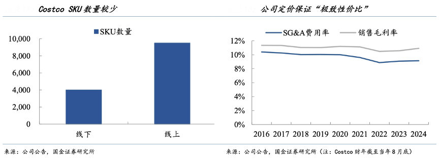 經(jīng)典案例:根據(jù)公司公告、國(guó)金證券研究所等綜合資訊表明,相比于其他零售業(yè)態(tài),Costco公司的 SKU 數(shù)量顯著偏低,線下商店僅不足 4000 個(gè),線上商城 也僅為 9000-10000 個(gè)。公司的運(yùn)營(yíng)重心放在提升商品的質(zhì)量和動(dòng)銷而非單純提高貨架廣 度,其實(shí)選擇太多也意味著沒有選擇,所以 Costco 為付費(fèi)會(huì)員提供的服務(wù)之一也包括能更放心、更省心的買到目標(biāo)品類中最好的商品,而不需要進(jìn)行頻繁的挑選比價(jià)。