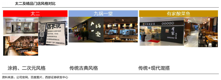 經(jīng)典案例:根據(jù)公司官網(wǎng)、百度圖片和西部證券研發(fā)中心等綜合資訊表明,太二品牌緊抓年輕消費(fèi)群體,定位最為清晰,比如品牌 IP 化、極簡(jiǎn)主義等,對(duì)年輕群體具有較大吸引力;此外,在食材口味方面,太二對(duì)于配料,比如酸菜、米飯也是精挑細(xì)選,差異化的賣點(diǎn)延續(xù)了其個(gè)性化的風(fēng)格。
