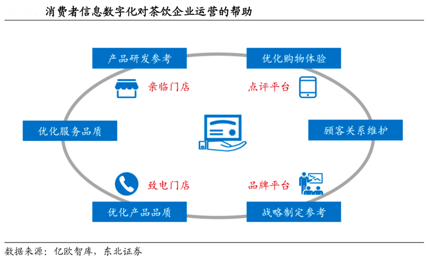 經(jīng)典案例:根據(jù)億歐智庫、東北證券等綜合資訊表明,新式茶飲企業(yè)逐漸開始搭建自主平臺(網(wǎng)站/App/小程序等),提供更多功能如提前點(diǎn)單、積分兌換、專屬評價(jià)渠道等,更好地匯聚消費(fèi)者數(shù)據(jù)及意見,優(yōu)化消費(fèi)者購物體驗(yàn);通過在自主平臺的前端設(shè)置口味選項(xiàng)(冷熱/甜度 /濃度等),做到千人千味。