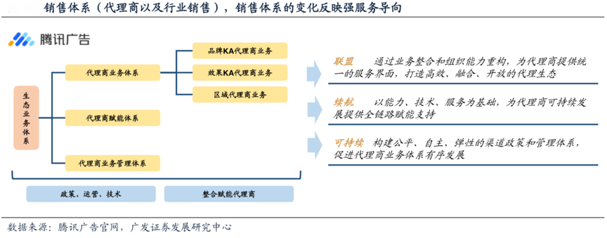 經(jīng)典案例:根據(jù)騰訊廣告官網(wǎng)、廣發(fā)證券發(fā)展研究中心等綜合資訊表明,組織架構(gòu)的調(diào)整打通了商業(yè)化鏈接空間,為騰訊廣告商業(yè)化路徑提供底層框架支撐。“930”改革之后,騰訊體系的資源不斷整合優(yōu)化,騰訊廣告銷售團(tuán)隊(duì)以及生態(tài)服務(wù) 商體系也在不斷升級,同時(shí)技術(shù)和平臺也在不斷升級。