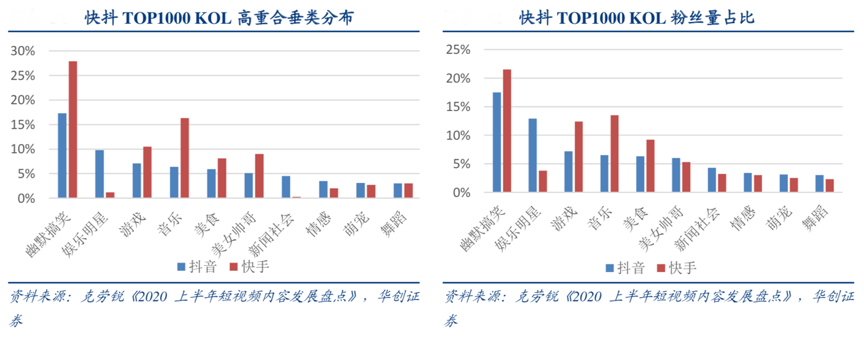 經(jīng)典案例:根據(jù)克勞銳《2020上半年短視頻內(nèi)容發(fā)展盤點(diǎn)》、華創(chuàng)證券等綜合資訊表明,用戶內(nèi)容偏好方面,快手重幽默和音樂,抖音偏娛樂和社會(huì)熱點(diǎn)。快手愛“搞笑”也愛“游 戲”,同時(shí)追求真實(shí)與普惠讓快手為草根音樂人提供了生存的土壤,音樂內(nèi)容深受用戶喜愛。