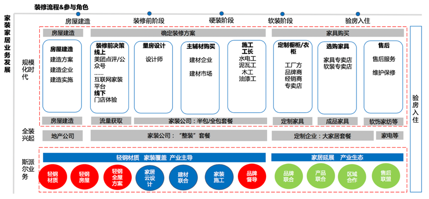 “六步致勝”之一:大產(chǎn)業(yè),貫穿式“輕鋼全屋產(chǎn)業(yè)鏈”經(jīng)營,搶占“輕鋼全屋”產(chǎn)業(yè)戰(zhàn)略制高點(diǎn),夯實(shí)“輕鋼建筑”產(chǎn)業(yè)流量入口,放大“輕鋼家裝”產(chǎn)業(yè)利潤管道,高舉“輕鋼家居生活”旗幟