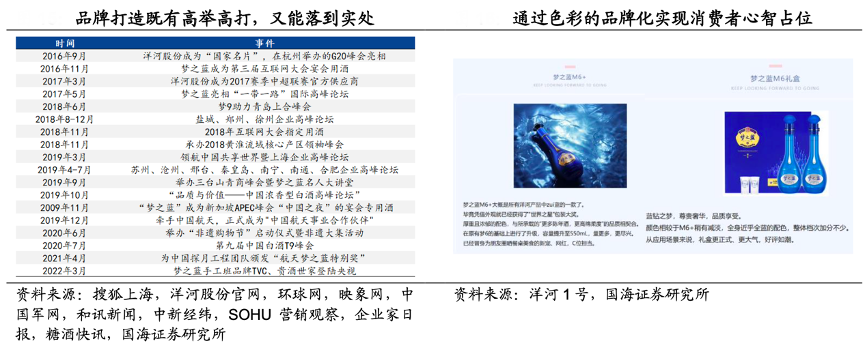 經(jīng)典案例:根據(jù)搜狐上海、洋河股份官網(wǎng)、環(huán)球網(wǎng)、映象網(wǎng)、中國(guó)軍網(wǎng)、和訊新聞、中新經(jīng)緯、SOHU營(yíng)銷觀察、企業(yè)家日?qǐng)?bào)、糖酒快訊、洋河1號(hào)、國(guó)海證券研究所等綜合資訊表明,洋河公司前期通過(guò)營(yíng)銷已經(jīng)順利完成“藍(lán)色經(jīng)典”、“夢(mèng)之藍(lán)”的品牌全國(guó)化,通過(guò)色彩營(yíng)銷完成 “占位”,把藍(lán)色與公司品牌畫上等號(hào),更以“雙名酒”形成難以超越的形象財(cái)富。