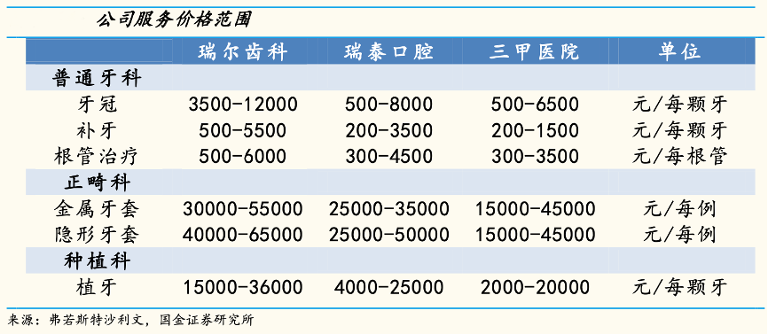 經(jīng)典案例:根據(jù)弗若斯特沙利文、國(guó)金證券研究所等綜合資訊表明,與三甲醫(yī)院相比,公司提供的同類口腔醫(yī)療服務(wù)的收費(fèi)一般更高,主要系公具有更資深的牙醫(yī)、更舒適的環(huán)境、充足優(yōu)質(zhì)的器械和藥物以及更人性化的客戶服務(wù)。