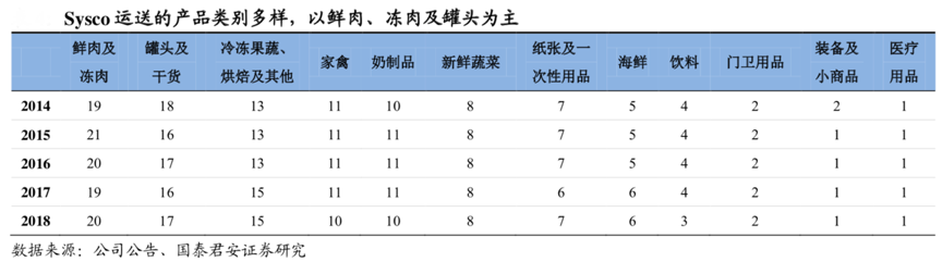 經(jīng)典案例:根據(jù)公司公告、公司官網(wǎng)、國泰君安證券研究等綜合資訊表明,Sysco 是北美最大的生鮮 B2B 企業(yè),年營收約 4000 億人民幣。Sysco (西斯科)是北美最大的生鮮 B2B 企業(yè),網(wǎng)絡遍及美國、阿拉斯加和加 拿大等,為餐廳、飯店、醫(yī)院和學校提供生鮮產(chǎn)品,包括鮮凍肉、海鮮、 家禽、蔬菜、水果、零食以及環(huán)保餐具廚房用品等。