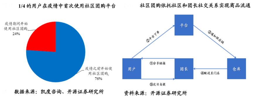 經(jīng)典案例:根據(jù)凱度咨詢、開源證券研究所等綜合資訊表明,根據(jù)凱度數(shù)據(jù)統(tǒng)計,有1/4的用戶在疫情中首次使用社區(qū)團(tuán)購平臺。隨著互聯(lián)網(wǎng)巨頭相繼加碼入局,社區(qū)團(tuán)購行業(yè)也迎來加速發(fā)展,生鮮成為線下超市經(jīng)營關(guān)鍵品類,到家需求快速增長。