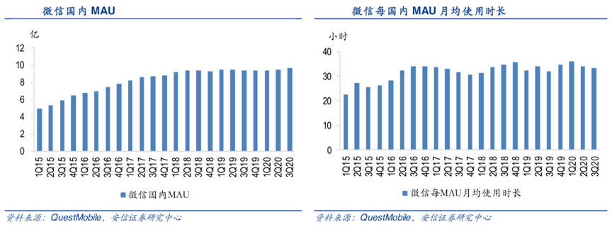 經典案例:根據(jù)QuestMobile、安信證券研究中心等綜合資訊表明,微信有著龐大的用戶基數(shù)和強大的社交基因,截至 3Q20 微信國內 MAU 已達 9.7 億,同期每 MAU 月均使用時長為 33 小時,小程序、公眾號、朋友圈等業(yè)態(tài)在 助 力 商 家沉淀私域流量方面具備突出優(yōu)勢。2020年以來微信加速了其商業(yè)化生態(tài)建設的步伐,2 月小程序公測直播功能,微信數(shù)據(jù)顯示截 至 9 月已有 10 萬商家開通了小程序直播。