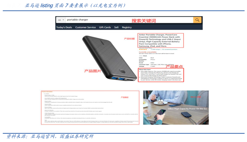 經(jīng)典案例:根據(jù)Amazon、wind、國盛證券研究所等綜合資訊表明,安克創(chuàng)新目前擁有超 1000 個 SKU,并憑借多年運營積累了一系列擁有高星級評分、多評論數(shù)的 listing,因此可以通過產(chǎn)品組合思維快速推爆。并可以通過listing 翻新的方式使新產(chǎn)品直接獲得原產(chǎn)品的星級評分和評論數(shù),縮短最初排名晉升時長、提升自然流量,確保新品在亞馬遜平臺有一定的曝光量,并利用站內(nèi)、站外引流進行前期運營推廣。