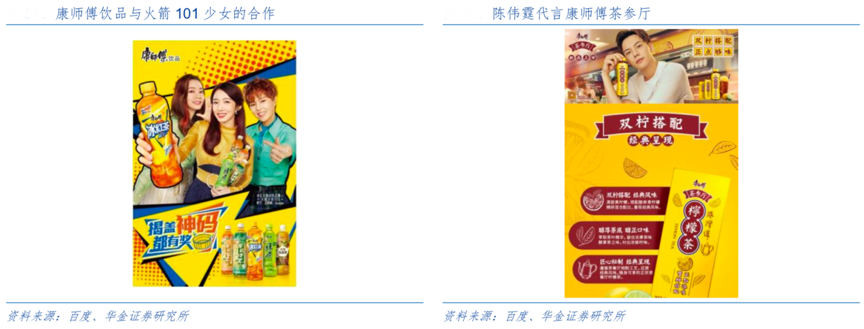 經(jīng)典案例:根據(jù)百度、華金證券等綜合資訊表明,康師傅一方面通過新營銷方式鞏固核心大單品,包括新口味、IP 合作、促銷等。另一方面向中高價飲品進軍,2019 年 6 月推出名為“茶參廳”檸檬茶,主打“雙檸搭配 正點港味”,突出港式的經(jīng)典檸檬茶風味,通過當紅明星陳偉霆代言,設(shè)計不同規(guī)格,獲得消費者的青睞。