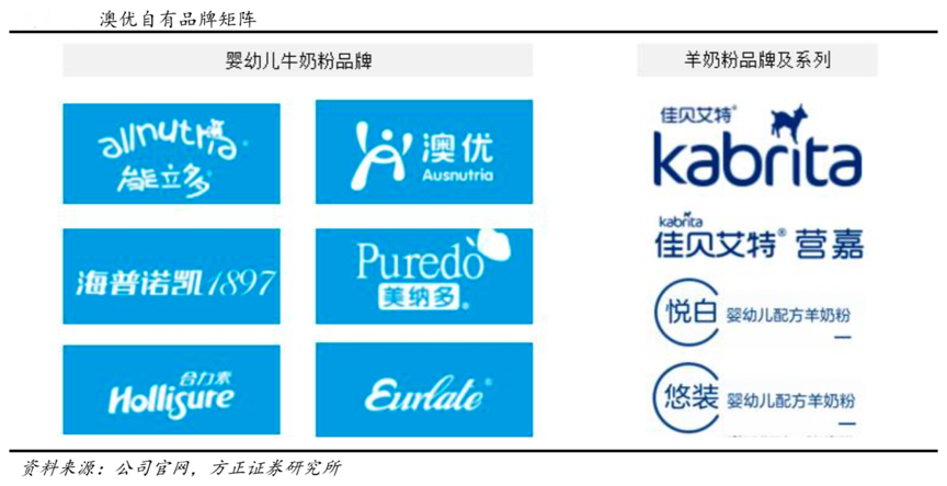 經(jīng)典案例:根據(jù)公司官網(wǎng)、方正證券研究所等綜合資訊表明,澳優(yōu)從創(chuàng)立以來成功孵化了多個品牌:(1)羊奶粉:公司 2011 年收購荷蘭海普諾凱,成功打造了核心大品 牌羊奶粉“佳貝艾特”,乳源和生產(chǎn)均在荷蘭。(2)牛奶粉:采用多品牌戰(zhàn)略,以品牌為業(yè)務(wù)單元發(fā)展了海普卡諾、 能力多、美納多等事業(yè)單元。2019 年佳貝艾特收入規(guī)模 29 億元,穩(wěn)居羊奶粉的第一品牌,根據(jù)海關(guān)數(shù)據(jù)在進(jìn)口羊奶粉總量中佳貝艾特占比高達(dá) 61%。