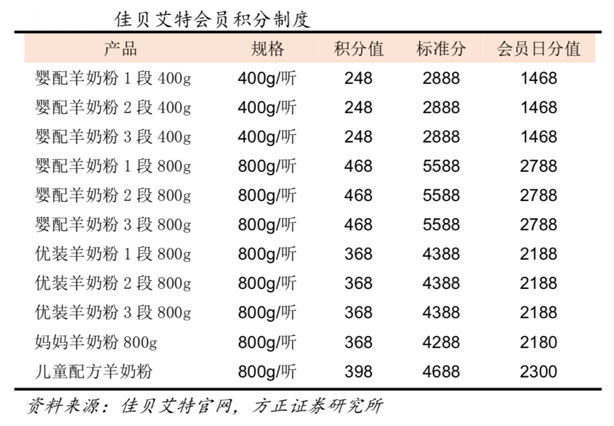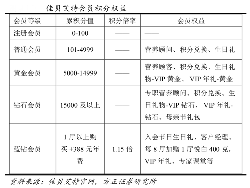 經(jīng)典案例:根據(jù)佳貝艾特官網(wǎng)、方正證券研究所等綜合資訊表明,澳優(yōu)多年深度經(jīng)營會員體系,深度合作線下門店,對所有用戶進(jìn)行積分管理制度。以深度合作的母嬰門店為核心入口,進(jìn)行會員數(shù)據(jù)的全 面收集,并基于數(shù)據(jù)進(jìn)行精準(zhǔn)營銷,營造社群分為,強(qiáng)化會員粘性,尤其是通過“媽媽圈”母嬰論壇創(chuàng)造口碑效應(yīng)。