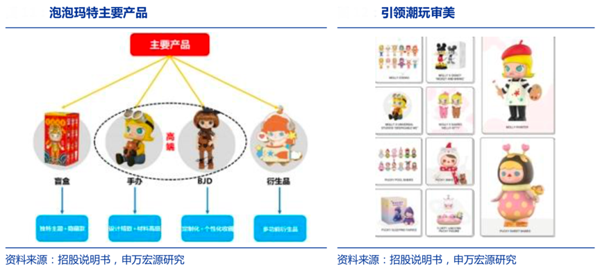 經(jīng)典案例:根據(jù)招股說明書、申萬宏源研究等綜合資訊表明,泡泡瑪特2016年從前期銷售爆款I(lǐng)P“Sonny Angel”的潮玩當(dāng)中找到靈感 ,借鑒盲盒的模式,推出第一個(gè)自主潮流玩具產(chǎn)品系列“M olly 星座”盲盒,吸引了大批粉絲追捧購買,實(shí)現(xiàn)了大規(guī)模商業(yè)化,Molly為市場上各種潮流玩具IP中最受歡迎的產(chǎn)品之一。