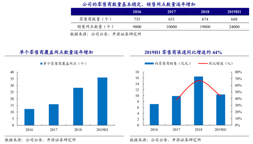 經(jīng)典案例:根據(jù)公司公告、開(kāi)源證券研究所等綜合資訊表明,飛鶴直接向如母嬰專 賣店、超市及大型超市銷售產(chǎn)品,其向 668 家零售商出售產(chǎn)品,覆蓋超過(guò) 2 萬(wàn)個(gè)銷售點(diǎn)。其合作的零售商數(shù)量逐年減少,自 2016 年的 735 家降至 2019H1 的 668 家,但零售商質(zhì)量增強(qiáng),平均單個(gè)零售商覆蓋網(wǎng)點(diǎn)數(shù)量自 2016 年的 12 家增至 2019H1 的36 家。