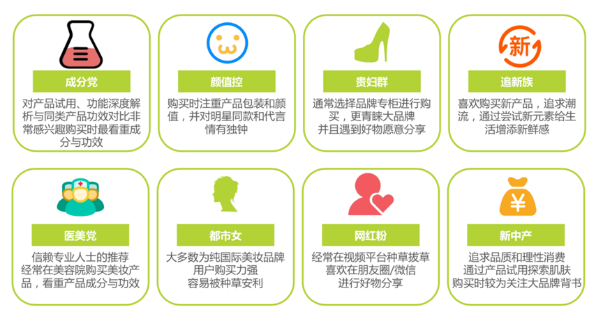 經(jīng)典案例:根據(jù)美妝消費(fèi)者訪談、艾瑞咨詢研究等綜合資訊表明,中國(guó)美麗妝護(hù)膚消費(fèi)者多種多種,各圈層美妝護(hù)膚消費(fèi)需求特征明顯,強(qiáng)化了這些圈層,自然可以助推企業(yè)數(shù)字品牌營(yíng)銷大發(fā)展。