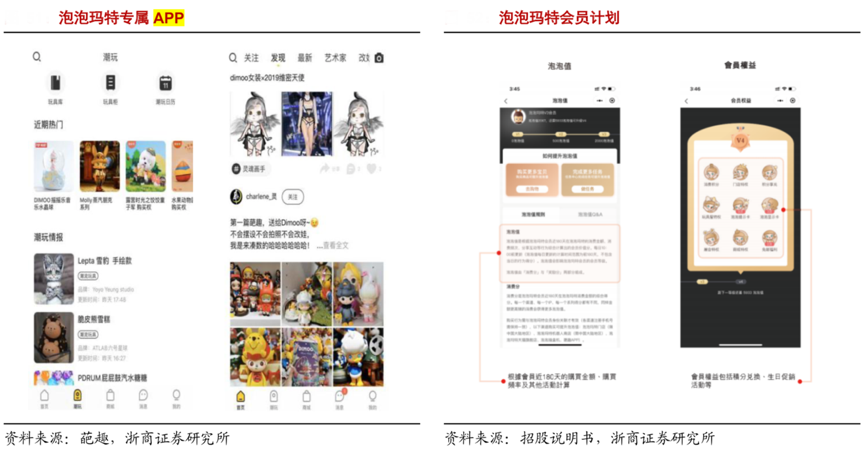 經(jīng)典案例:根據(jù)葩趣、公司招股說明書、浙商證券研究所等綜合資訊表明,泡泡瑪特線上開發(fā)專屬 APP“葩趣”,粉絲通過 APP 關(guān)注藝術(shù)家動(dòng)態(tài)、獲取最新潮玩 資訊、進(jìn)行線上交易,同時(shí)交流、分享盲盒心得;線下每年舉辦多次粉絲見面會(huì),兩次潮流玩具展會(huì),保持粉絲凝聚力。2017-2020H1 年公司注冊(cè)會(huì)員由 30 萬名快速升至 360 萬名,注冊(cè)會(huì)員整體 2019/20H1 復(fù)購率分別為 58%/51%(行業(yè)前 10 玩家 2019 年平均復(fù)購 率為 50.4%)用戶忠誠度較高。
