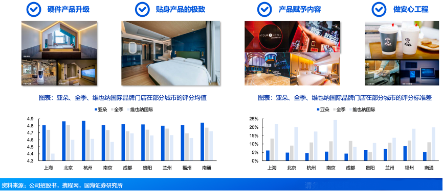 經(jīng)典案例:根據(jù)公司招股書、攜程網(wǎng)、國海證券研究所等綜合資訊表明,亞朵堅持立客戶之本,將硬件設施進行年輕化、智能化升級,房間整體裝修時尚簡約,配備了手機投屏、機器人送餐等智能設備;同時為產(chǎn)品賦予更多內(nèi)容,在酒店內(nèi)提供諸如圖書館、健身 房、茶室、影音等主題空間,并推出了一系列聯(lián)名IP酒店。