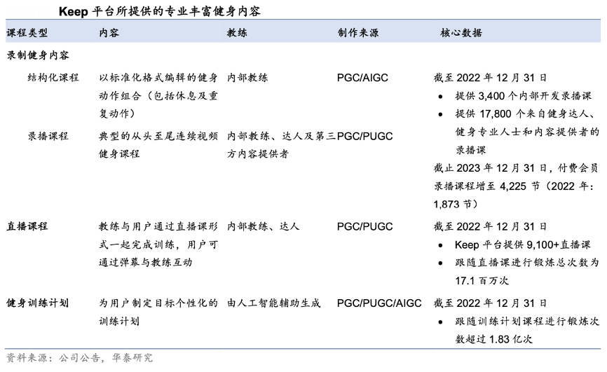 經(jīng)典案例:根據(jù)公司公告、華泰研究等綜合資訊表明,Keep 平臺(tái)上的課程內(nèi)容不僅是 Keep 核心內(nèi)容資產(chǎn)與競爭力,也是驅(qū)動(dòng)其用戶生態(tài)發(fā)展的底層,建立 Keep 相關(guān)運(yùn)動(dòng)生態(tài)的基礎(chǔ)。同時(shí),Keep 利用基礎(chǔ)健身內(nèi)容拓展用戶規(guī)模,創(chuàng)建 Keep 用戶社區(qū),從社交維度提高用戶粘性。
