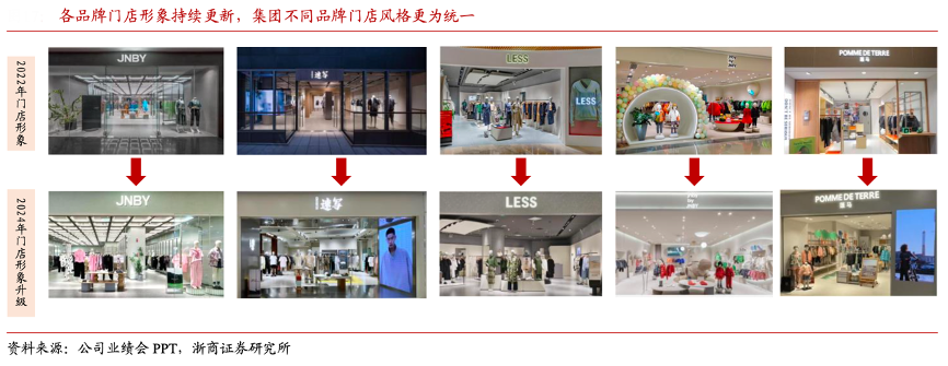 經(jīng)典案例:根據(jù)公司業(yè)績(jī)會(huì)PPT、浙商證券研究所等綜合資訊表明,江南布衣逆勢(shì)升級(jí)門店形象,不同品牌門店風(fēng)格更為統(tǒng)一發(fā)揮多品牌協(xié)同效應(yīng)。公司從客流量低谷期 FY2021 財(cái)年逆勢(shì)升級(jí)門店形象,為出行全面放開客流量復(fù)蘇,銷售快速恢復(fù)奠定基礎(chǔ),最新一代店鋪形象顯著提升線下門店消費(fèi)者進(jìn)店意愿。