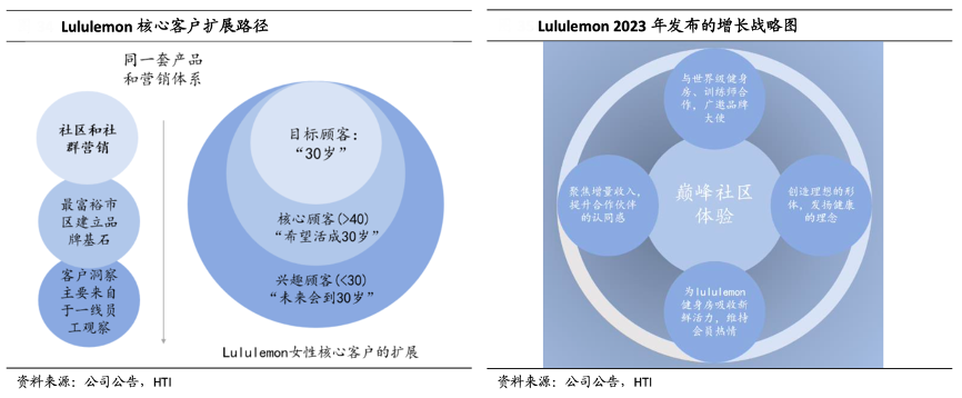 經(jīng)典案例:根據(jù)公司公告、HTI.等綜合資訊表明,LULU 品牌傳播起源于社區(qū)營(yíng)銷,人和社群是 LULU 的基石。形成社群后,會(huì)鏈接核心的客群,客群間大家產(chǎn)生共鳴,忠實(shí)的客群又進(jìn)一步產(chǎn)生裂變。社區(qū)和社群營(yíng)銷是 LULU 的基因,至今在全球范圍內(nèi)仍是最重要的營(yíng)銷手段之一。