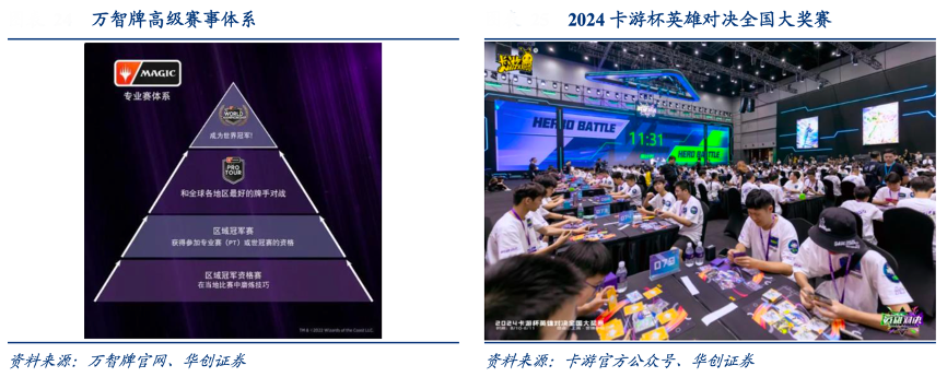 經(jīng)典案例:根據(jù)萬(wàn)智牌官網(wǎng)、卡游官方公眾號(hào)、華創(chuàng)證券等綜合資訊表明,卡游作為國(guó)內(nèi)卡牌行業(yè)領(lǐng)軍企業(yè),推出原創(chuàng) TCG 賽事“英 雄對(duì)決”,2019 年以來(lái)在全國(guó) 100 多個(gè)城市舉辦了 3,000 多場(chǎng)比賽,通過(guò)新手賽、月賽、 SP 賽、城市巡回賽、城市公開賽等形式在全國(guó)召集玩家,進(jìn)行線下卡牌對(duì)戰(zhàn)選拔,最后進(jìn)行大獎(jiǎng)賽,角逐全國(guó)冠軍,吸引 20 多萬(wàn)選手參加,成為國(guó)內(nèi)規(guī)模最大的 TCG 競(jìng)技賽事之一。