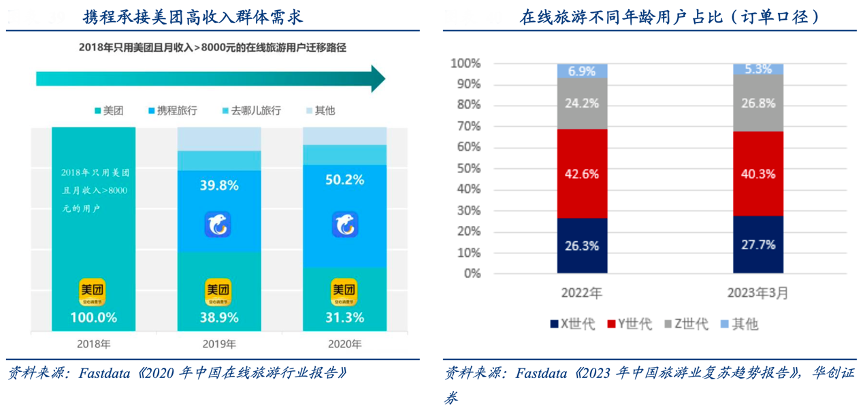 經(jīng)典案例:根據(jù)Fastdata《2023年中國旅游業(yè)復(fù)蘇趨勢報告》、華創(chuàng)證券等綜合資訊表明,近幾年通過線下門店拓張和 下沉市場用戶營銷投放,攜程在低線城市不斷滲透和提高購買力,2023年門店數(shù)量已重回 5700 家,23Q2 攜程平臺上三線及以下酒店預(yù)訂量較 2019 年增加超過 50%。