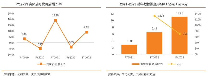 經(jīng)典案例:根據(jù)公司公告、天風(fēng)證券研究所等綜合資訊表明,江南布衣公司積極推出 并升級(jí) 包括“不 止盒子 ”、“多元 化社交 電 商”及“江南布衣+”多品牌集合店等新興消費(fèi)場(chǎng)景或產(chǎn)品,提供給消費(fèi)者更多增值服務(wù) 的同時(shí),逐步升級(jí)各個(gè)品牌的店鋪形象,以求帶給顧客更舒適的購(gòu)物體驗(yàn)。2023 財(cái)年,“不止盒子”、“微商城”及“多元化社交電商”等在內(nèi)的數(shù)智零售渠道的 GMV 達(dá)到人民幣 11.07 億元,較 2022 財(cái)年增長(zhǎng)超過(guò) 70.4%。