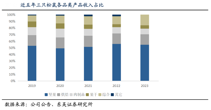 經(jīng)典案例:根據(jù)公司公告、東吳證券研究所等綜合資訊表明,三只松鼠公司堅持以堅果為核心,三只松鼠每日堅果、夏威 夷果、開心果等堅果產(chǎn)品長期穩(wěn)居天貓等眾多品類榜單前列。同時,其也在不斷進行品類拓展,近年來新增甄養(yǎng)椰子汁、鮮蛋糕、手撕風干烤脖、鱈魚腸、紅豆蛋黃酥 等系列新品,產(chǎn)品矩陣不斷豐富。