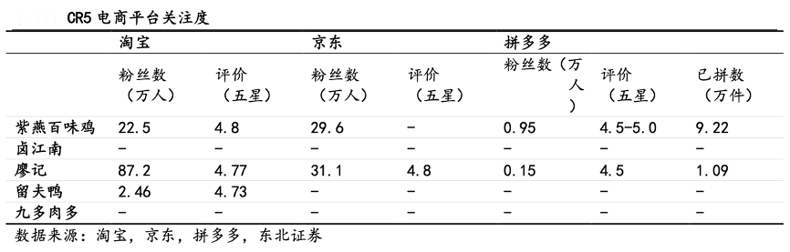經(jīng)典案例:根據(jù)淘寶、京東、拼多多、東北證券等綜合資訊表明,紫燕食品入駐電商平臺,建立直營旗艦店。2010 年,中國開始進入電商時代,公司成為佐餐鹵制品品牌入駐電商平臺的領軍者,于 2014 年進軍淘寶、京東等電商平臺設立旗艦 店,隨后于 2018 年入駐當時電商界冉冉之星——拼多多,主要售賣預包裝產(chǎn)品。