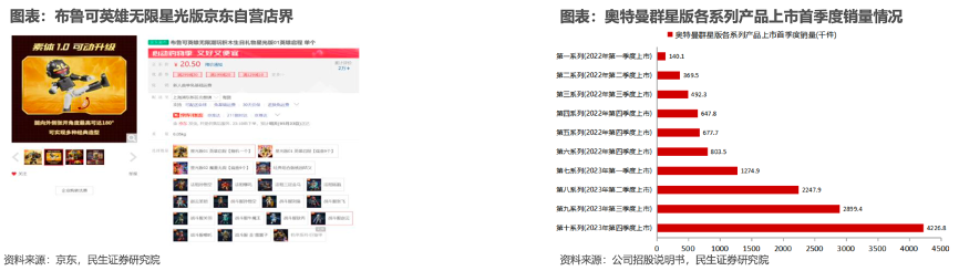 經(jīng)典案例:根據(jù)京東、公司招股說明書、民生證券研究院等綜合資訊表明,布魯可在不同價(jià)格帶均推出高性價(jià)比的產(chǎn)品。2023年12月推出的人民幣19.9元的英雄無限星光版多個(gè)平價(jià)SKU,首次推出就受到關(guān)注性價(jià)比的廣大消費(fèi)者的廣泛歡迎,單SKU首季銷量超過35萬件。