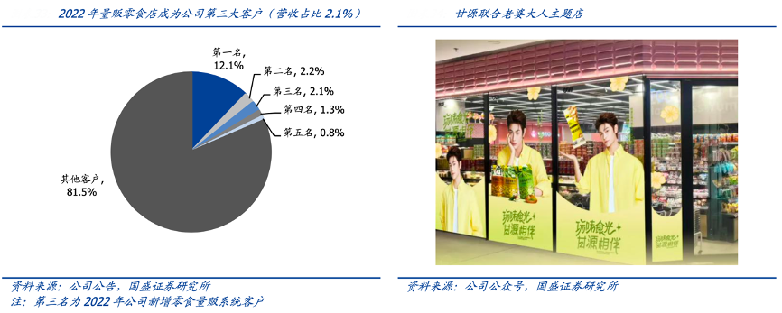經(jīng)典案例:根據(jù)公司公告、公司公眾號、國盛證券研究所等綜合資訊表明,甘源量販零食系統(tǒng)自 21H2 進(jìn)入快速發(fā)展階段,甘源于 2022 年擁抱量販零食系統(tǒng),從頭部零食很忙、零食有鳴、趙一鳴等合作逐步拓展腰部、尾部系統(tǒng)合作,以量販自身展店+SKU 迭代實(shí)現(xiàn)快速發(fā)展,2024 年量販零食店已占甘源 20%以上營收比重。