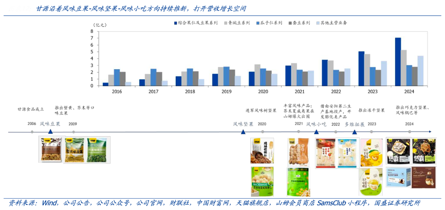 經(jīng)典案例:根據(jù)wind、公司公告、公司公眾號、公司官網(wǎng)、財(cái)聯(lián)社、中國財(cái)富網(wǎng)、天貓旗艦店、山姆會員商店SamsClub小程序、國盛證券研究所等綜合資訊表明,甘源以風(fēng)味化創(chuàng)新為基礎(chǔ),持續(xù)在風(fēng)味領(lǐng)域深耕,除了產(chǎn)品體系的拓展、口味的不斷延展,更打造出多重生產(chǎn)工藝,構(gòu)建風(fēng)味研發(fā)壁壘。